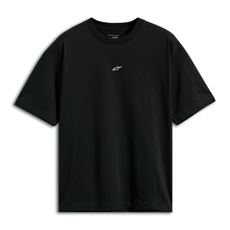 Oversized tee with small front Astars logo and small back Alpinestars word logo in a soft hand print.
