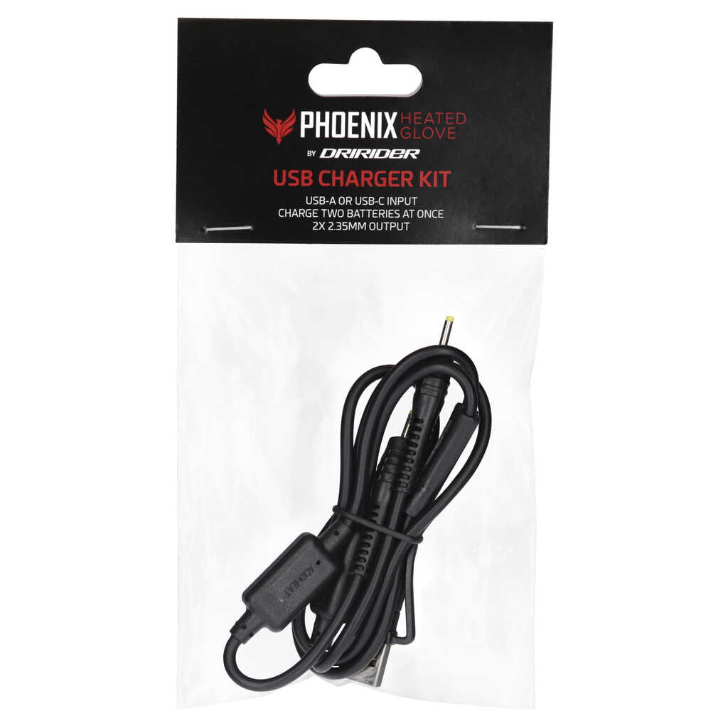 Dririder Phoenix gloves are premium leather heated gloves, offering up to eight hours of heat across three power settings, depending on your environment. If you've lost the charging cable for your Phoenix glove batteries, this is what you're looking for.