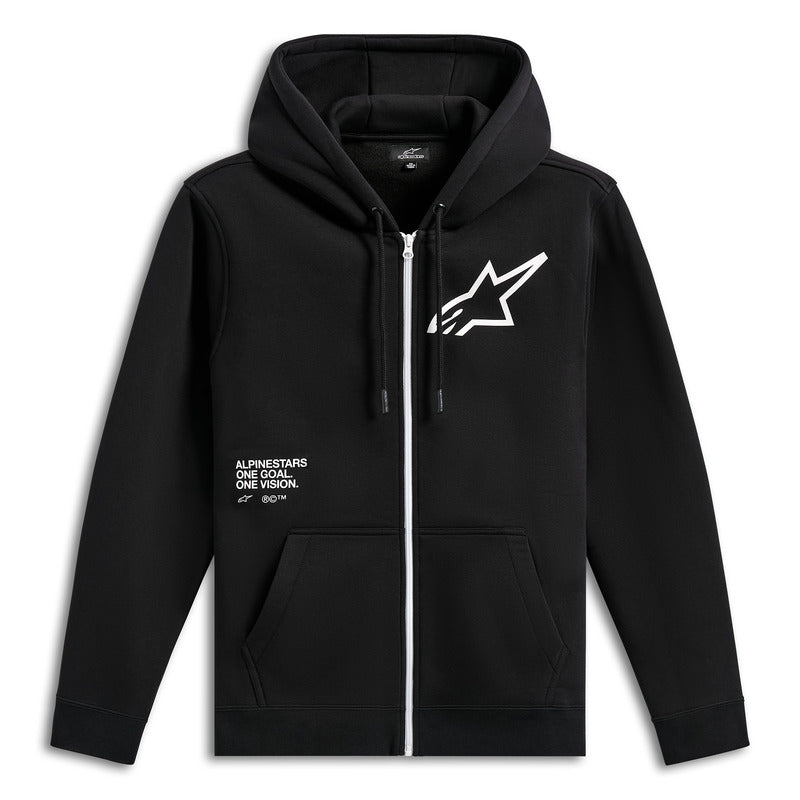 Classic zip-front fleece hoodie featuring bold Astars branding and motivational One Goal print.This solid hooded zip-front fleece combines clean styling with signature Alpinestars attitude.