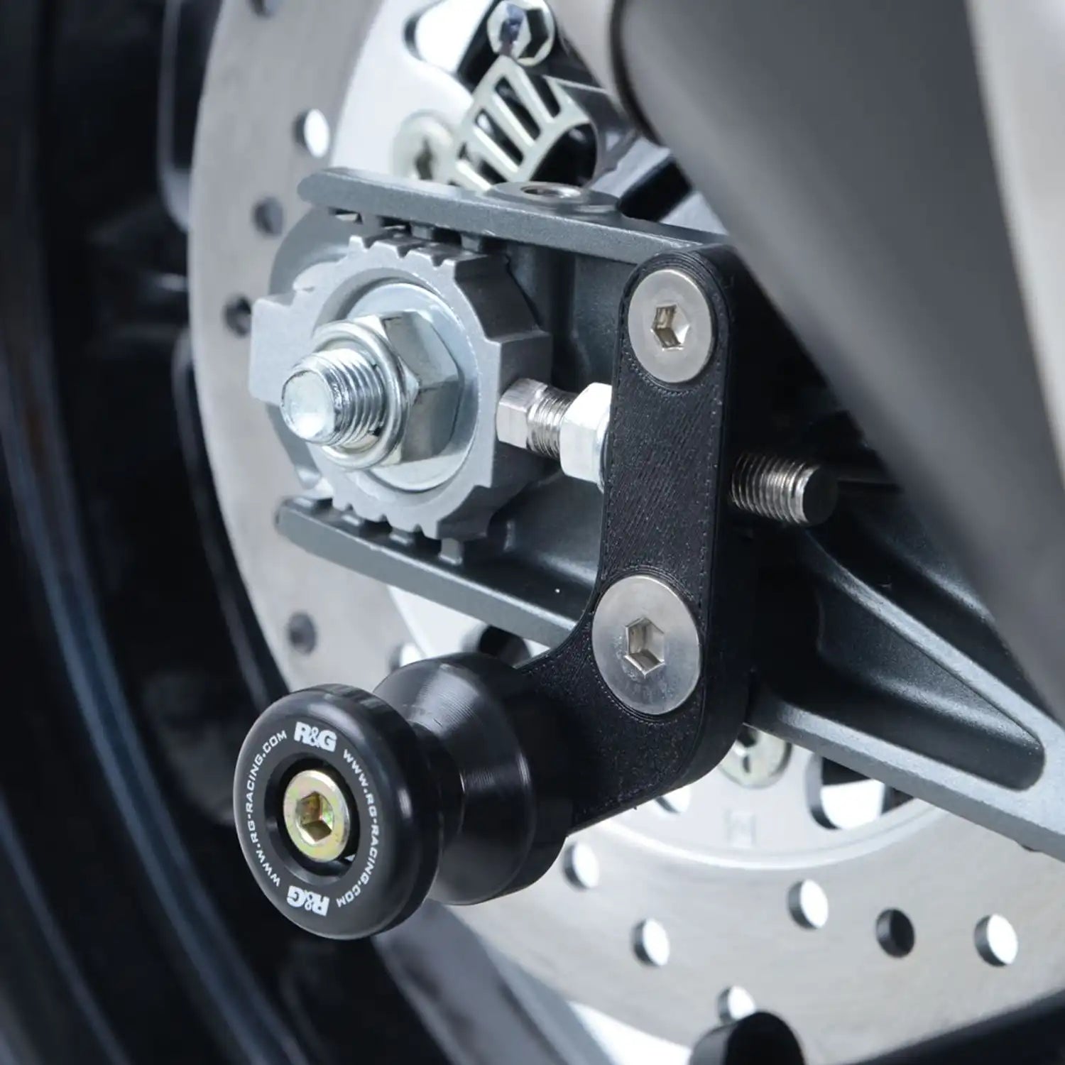 R&G Offset Cotton Reels protect the swingarm and core swingarm components from damage in the event of a crash, slide or drop. Doubling up as paddock stand bobbins too, they allow the motorcycles rear wheel to be lifted into the air with the use of a paddock stand to perform chain adjustments, chain lubrication and cleaning!