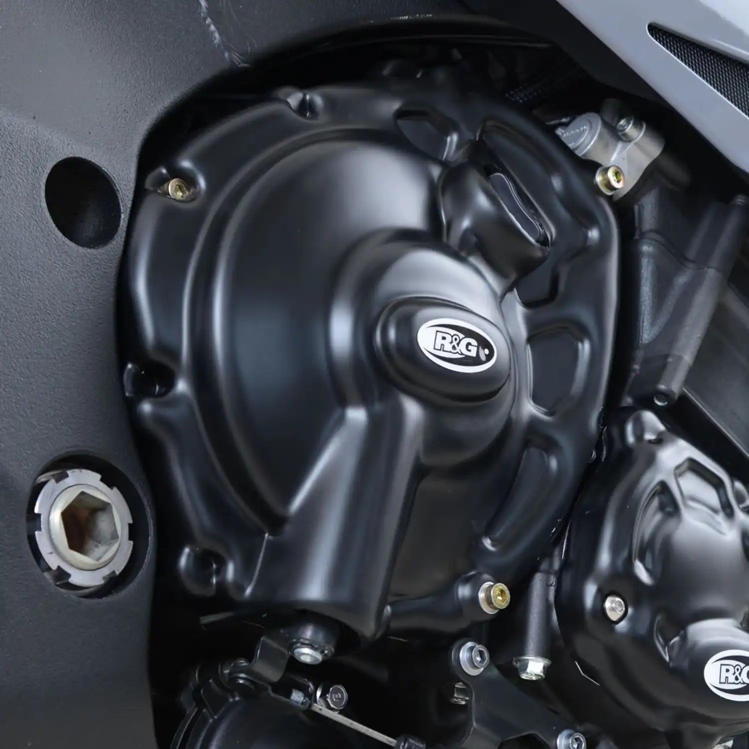 This right hand side R&G Engine Case Cover fits the Yamaha MT-10 '16- & SP '17-, suitable for the right hand side clutch casing. These exciting new engine case Covers have been developed in collaboration with selected race teams and crash tested within the R&G Racing Suzuki GSX-R Trophy. Crafted from 4mm polypropylene for strength, durability and good looks. They compliment our crash protectors perfectly. The covers simply bolt on over the original engine casing. So no messing with glue or removing anything. Slimline for maximum ground clearance, ultra lightweight, matt finish and protecting one of the most vulnerable parts of the machine. These could save you £'s in the event of an accident ...Ever seen the prices of a new engine casing or the cost of removing debris from your engine? Made in the U.K.