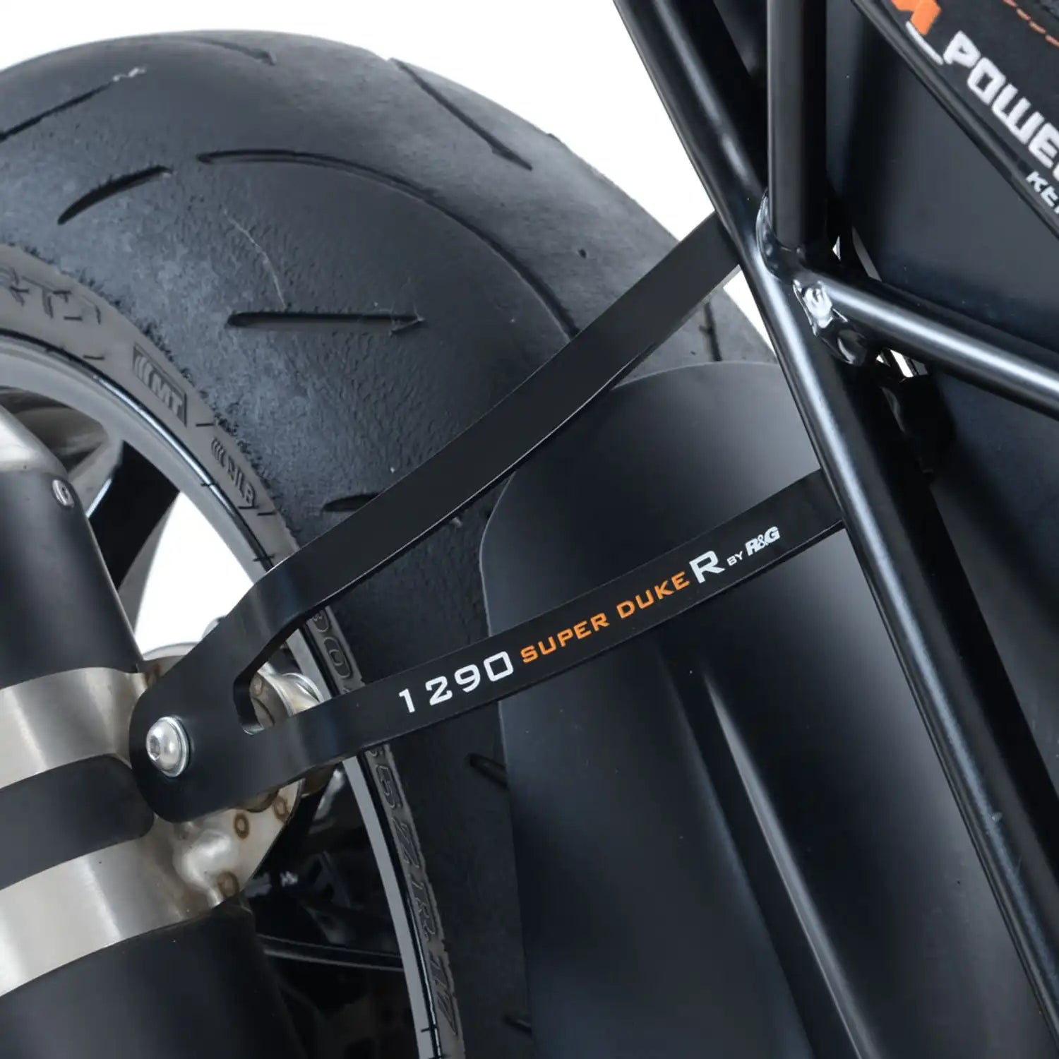 This stylish R&G Exhaust Hanger has been specifically designed for the KTM 1290 Super Duke R '14-'16 model and not only reduces weight, but also gives the bike a sportier, sleeker look. With a classy, black, powder coated finish and vivid KTM 1290 Super Duke R graphics, it is made from sturdy, aircraft-grade aluminium and will retain its good looks for many years.