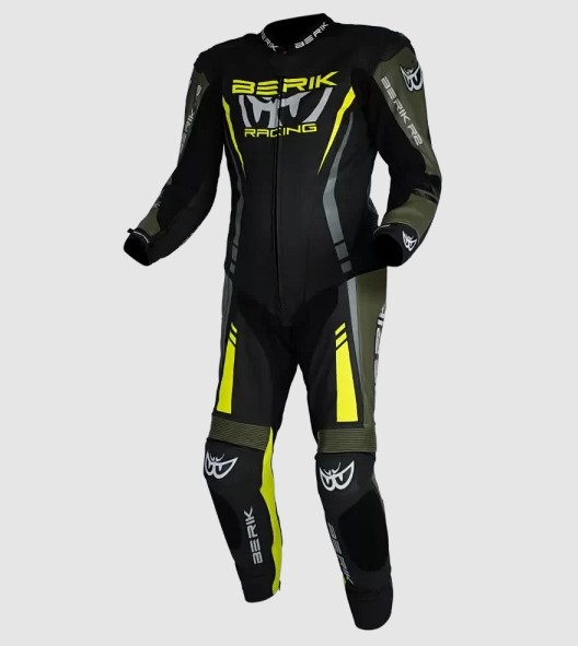 Berik Sicly Leather Race Suit - Army/Hi-Viz